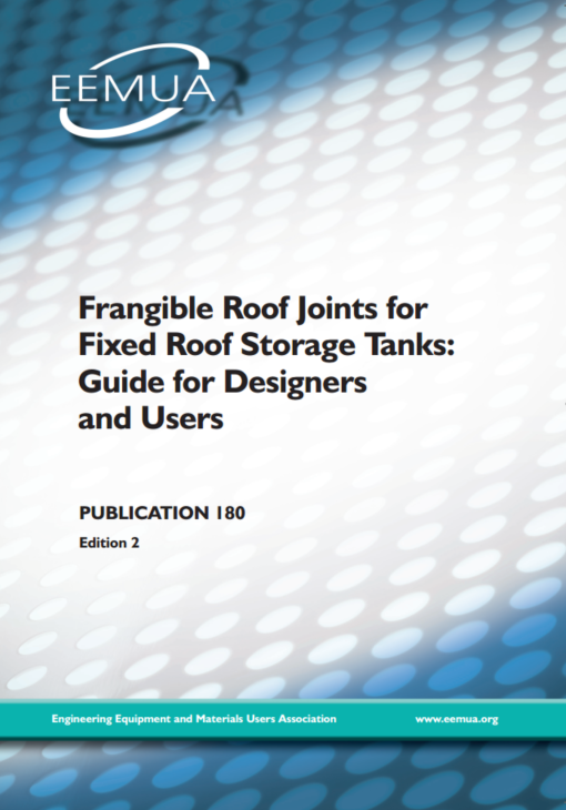 Eemua 180 gives guidance to designers and users of such tanks on the practical steps that can be taken in design operation and maintenance to predispose the roof to shell joint to fail in preference to the shell to bottom joint thereby ensuring retention of the tank s contents.